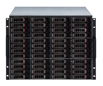DH-ESS9052-R系列产品是浙江大华自主研发的新一代网络视频存储服务器,采用64位软硬件平台,基于专业的控制器架构,是集成了视频流直存、IPSAN、NAS一体化的综合性网络存储阵列产品。采用8U/48盘位机箱设计,支持扩展柜多级级联,整机提供768路2M码流存储及转发能力。