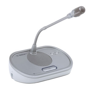 与会者可使用带固定话筒的讨论机进行发言、发言请求和收听他人发言。 话筒柄可以灵活弯折。 讨论机带两路耳机插孔,即使在背景声音非常嘈杂的情况下,也能听清他人发言。 当话筒开启时,内置扬声器处于静音状态,以防自激。 多种颜色的装饰边框(DCN-DISR 单独订货)供用户选择。