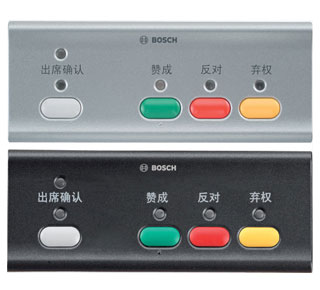 主要特点: 时尚设计(IF大奖) 彩色表决按钮 中文文字 直接环路接入DCN网络 允许进行代表大会表决 对于只需要表决功能的场合,经济的解决方案 产品综述 该装置用于进行出席登记、代表大会表决以及赞成/反对表决。 它附带彩色表决按钮和中文文字。 这些文字包括:出席、赞成、反对和弃权,颜色依次为白色、绿色、红色和黄色。 黄色 LED 确认指示灯用于提示用户登记出席和表决,并确认登记表决选项。 蓝色 LED 装置活动指示灯表示系统处于正常操作状态。 当装置检测到通信故障时,蓝色 LED 指示灯将会闪烁。 表决装置配上端帽之后显得非常时尚,可以完美融入现代和传统风格的会议室。 对于只要求投票功能的场合,可以直接接入 DCN 网络电缆以节省成本。