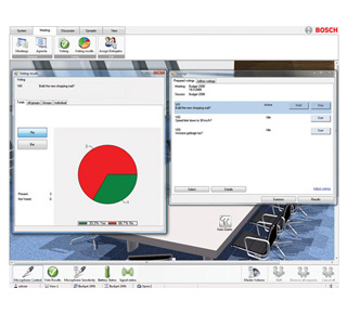 主要特点: 操作人员可以完全控制代表大会表决进程 众多的提案准备功能 输出表决结果至打印机 众多与表决相关的参数选项 产品综述 DCN‑SWPV 会议软件代表大会表决模块用于控制和准备代表大会表决。该软件提供多种功能,包括表决准备、指定与表决相关参数以及启动和控制表决。 表决的准备工作在配置应用程序中进行,表决过程则在操作员应用程序中进行并显示结果。表决是各议程项目中的可选部分。表决可由多项提案或提议组成,每一项均可进行表决。 表决的准备工作通过两个步骤完成。 首先必须定义模板。 模板中包含一些常用设置,如自动打印、保密、需要达到的多数人数等等。其次是创建单个表决。 此时,必须定义数量、名称主题、模板和答案组。 另外,用户还可以定义文档链接,并通过操作员应用程序激活。 本文档可用作特定表决的附加信息。