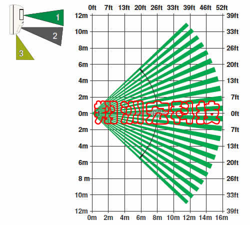 三焦距光学技术采用具有三种特定焦距的光学元件:长焦范围、中焦范围和短焦范围。 探测器可将这三种焦距应用于 86 个探测防区,从而组合成 11 个严密的探测网。 此外,三焦距光学技术还包括两个热释电传感器,拥有双倍的标准光学增益。 传感器可以处理多个数据信号,性能精确,真正消除了误报。主动白光抑制