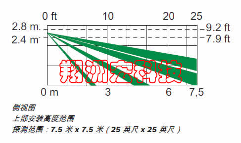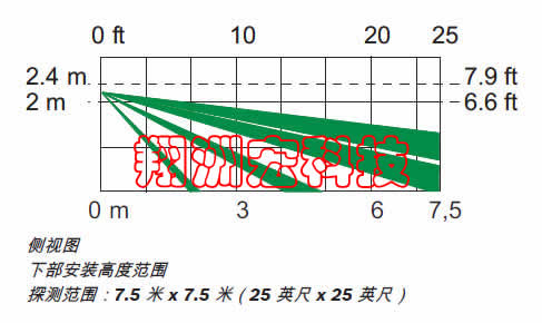 注解可选的安装支架会减少探测器的探测范围,并会增加探测盲区。