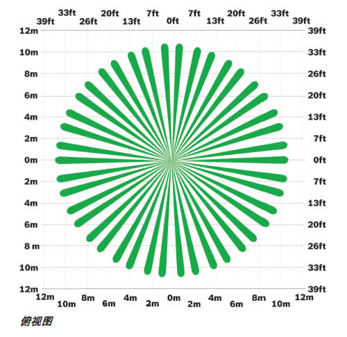 英尺)全方位探测范围。 安装高度为 2.4 米(8 英尺)时,提供 12 米(40 英尺)全方位探测范围。