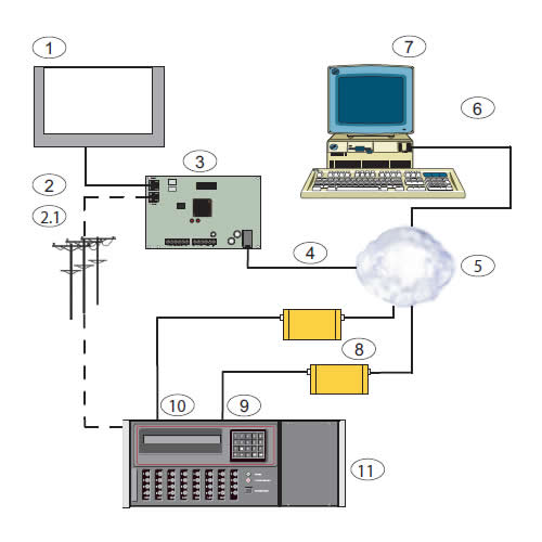 当拨号器要报告消息时,C900V2 将模拟拨号音和线路电压,使拨号器能够执行多种功能,就像它已通过 PSTN 连接至监控中心的数字接收器一样。 C900V2 能够解码所传输的拨号器消息并转换成可在任何 UDP/IP 网络上传输的数据。